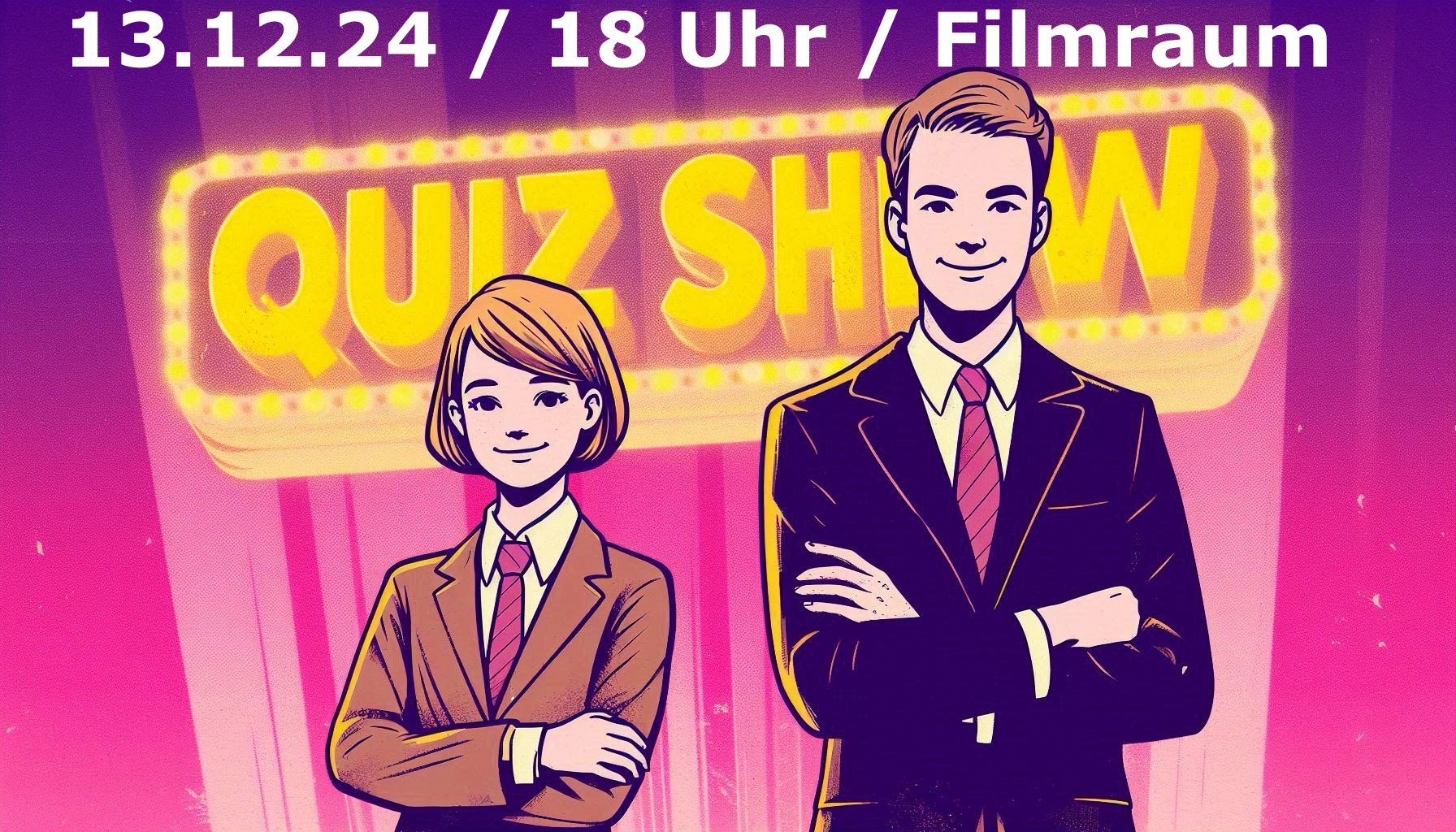 Die Show findet statt am Abend des 13.12.24 von ca. 18:30 bis 21 Uhr (Einlass ab 18 Uhr) und ist für alle von jung bis alt offen. Die Tickets für 3 Euro gibt es wieder an der Abendkasse unmittelbar vor der Veranstaltung. Für Getränke und Snacks ist durch unser Q2-Team wieder gesorgt.