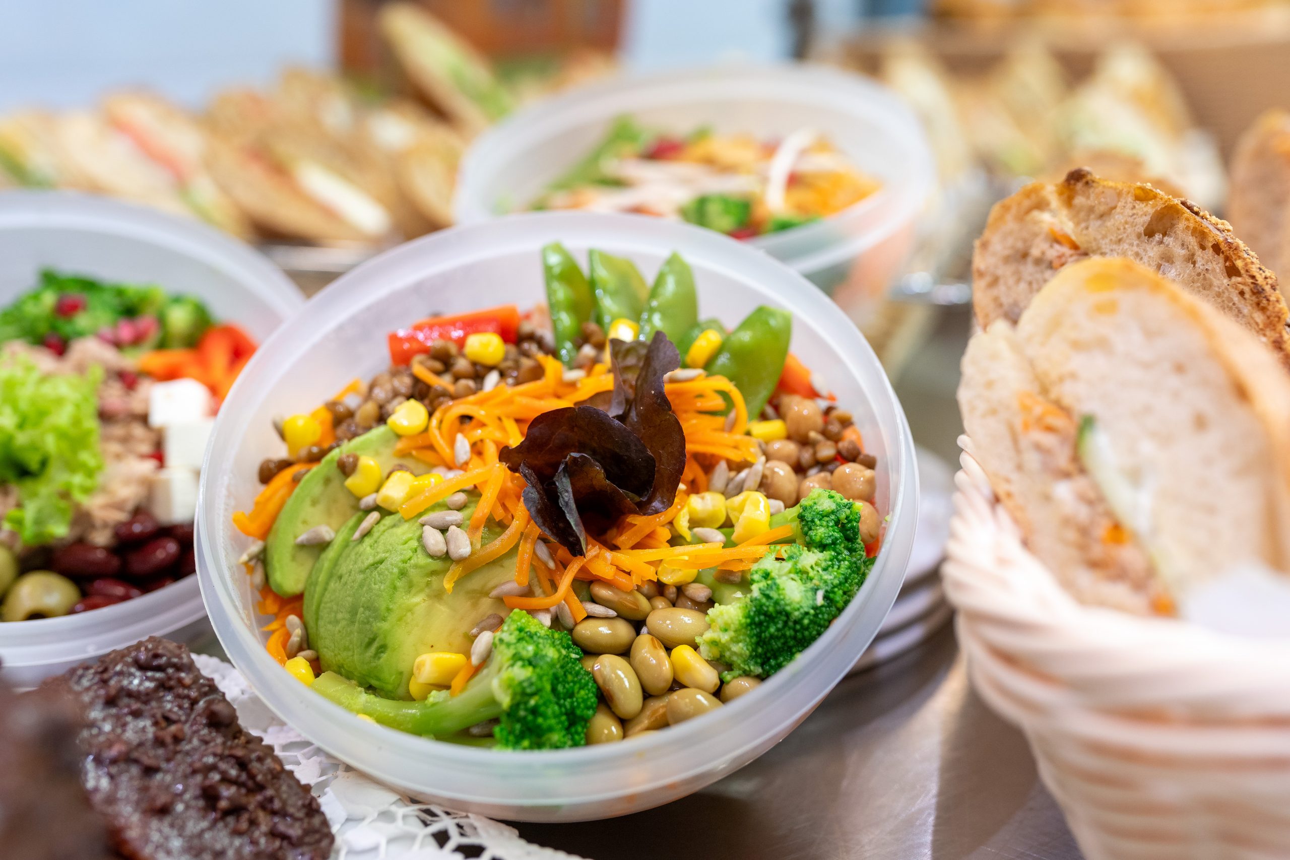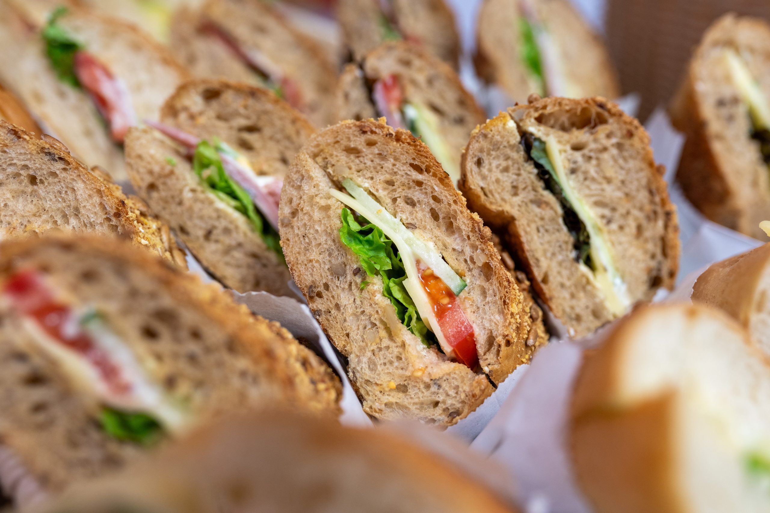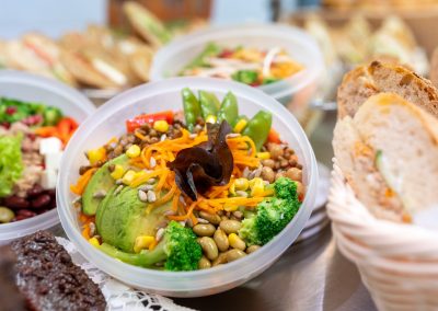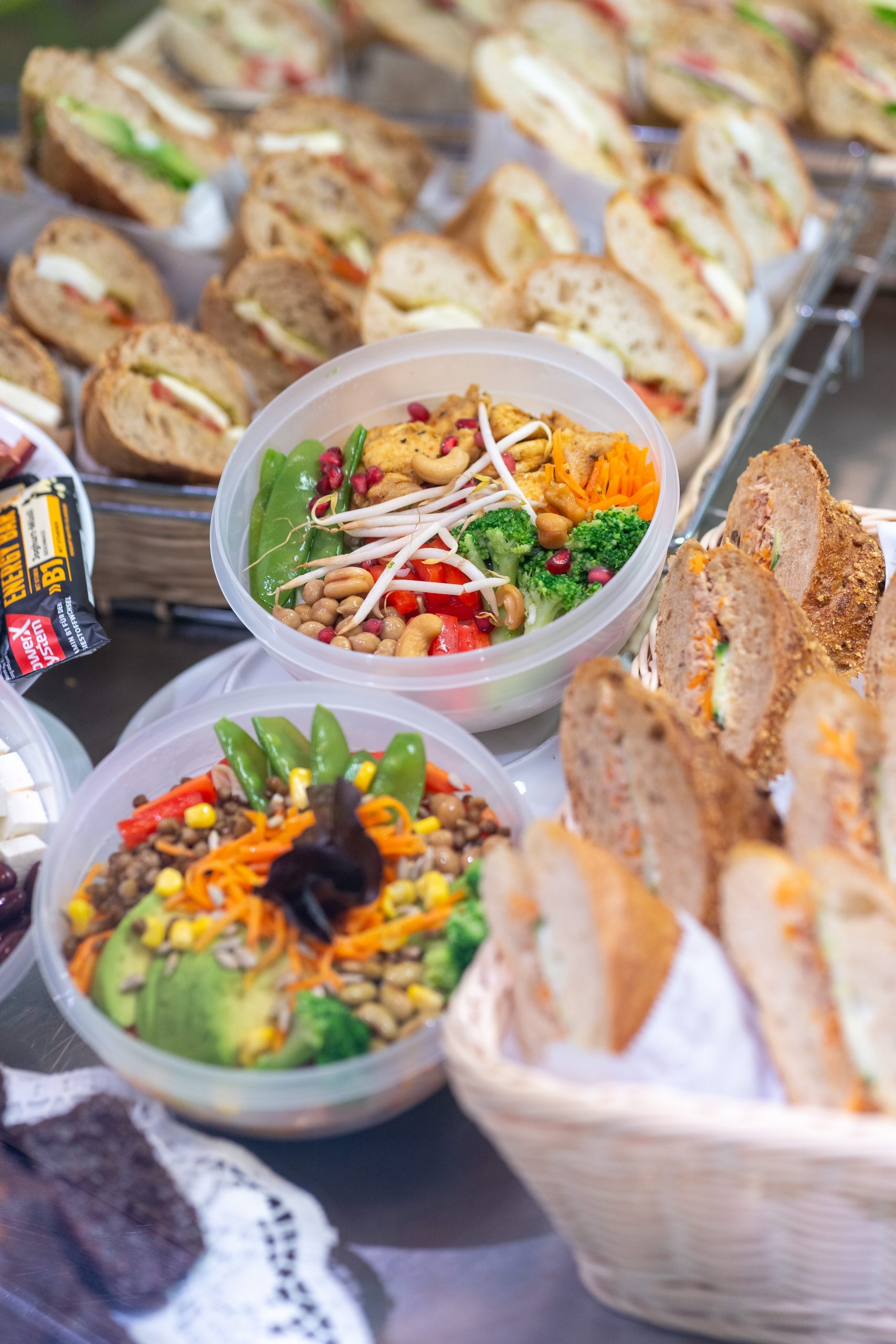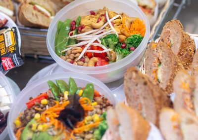 In den Pausen am Vormittag bieten wir gesunde Snacks aus Obst und Gemüse, aber auch belegte Baguettes und Sandwiches sowie verschiedene Getränke an.